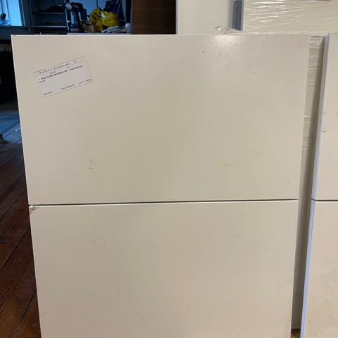 Låger, Uno Form, Låge til højskab (20 x 61). Hvid laminat med bøgekant. Passer til den form for "højskab", hvor man pakker et fritstående køleskab (eller en anden hvidevare på 60cm) ind i plader. Se også vores andre annoncer med Uno Form/Unoform tilbehør.