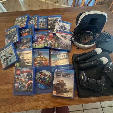 Sælger en stor PS2 pakke med masser af spil og udstyr – perfekt til fest, karaoke og retro gaming 🎤🎸