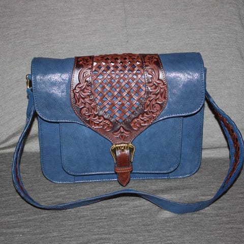 Håndlavet kernelæder tasker, med Håndlavet tooling og farvet I naver farve så det holder.
