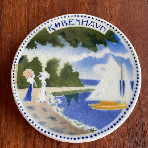 Aluminia .Børnehjælpsplatte i fajance. Børnehjælpsdagen 1913 i relief. Ø 9 cm.