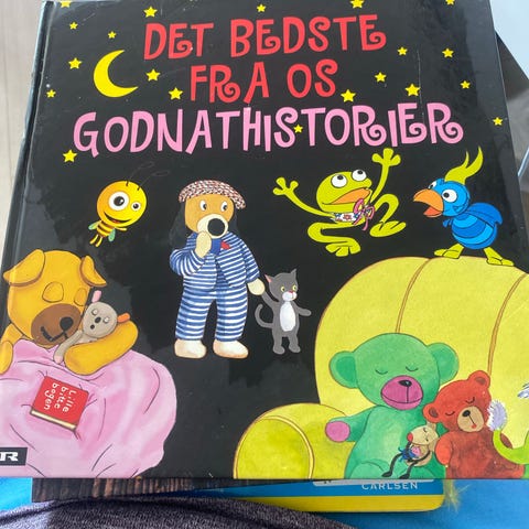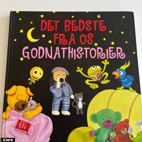 Bogen "Det bedste fra Os godnathistorier" med masser af farverige illustrationer og kendte figurer fra DR. Stor hardback-bog med både historier og rim, som børnene kan kigge i og få læst højt.