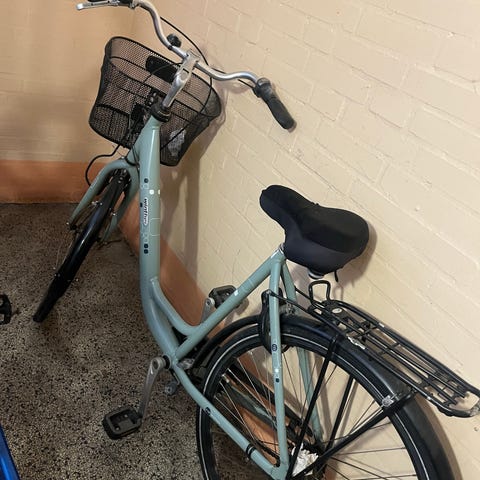 Velholdt mørkeblå damecykel , stået i cykelkælder, gearkabel skal udskiftes, cyklen har nyere dæk slanger