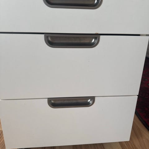 Hvid kontorskuffekassette på hjul med 3 skuffer og lås
