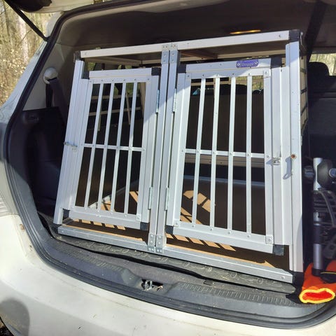 Travall hundegitter/bagagerumsdeler til bil, model TDC 1469 NU. Solid gitter i metal med midterdeler, der monteres bag bagsæderne.