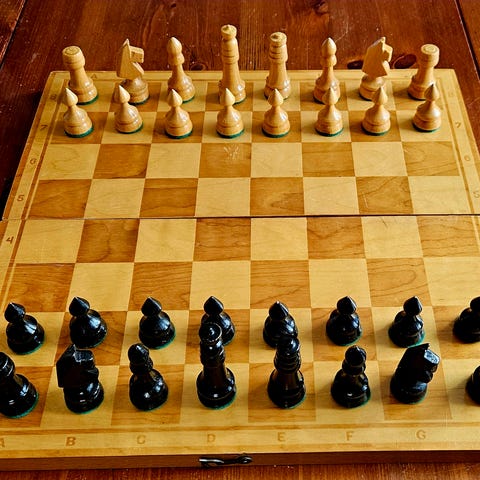 Træ skakspil med bræt og brikker