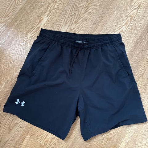 SAYSKY løbeshorts i str L med blå/sort camo-mønster og elastik i livet. Har lille lynlåslomme (med fugtbeskyttende inderfor) bagpå og logo-detaljer på benet. Mangler snøre i livet og sælges derfor billigt, men har elastik og passer som en str. L skal.