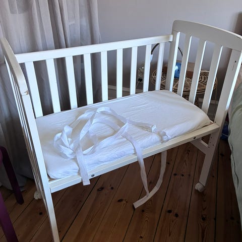 The cot has already been dismantled (see last photo) and is ready for collection in Frederiksberg.