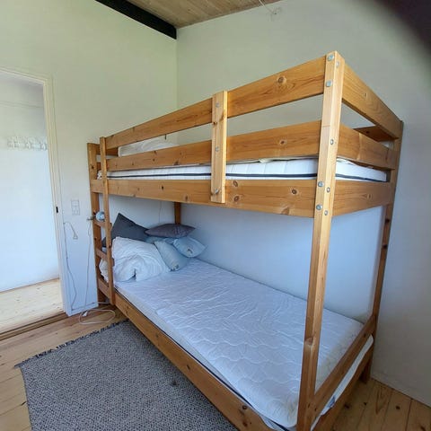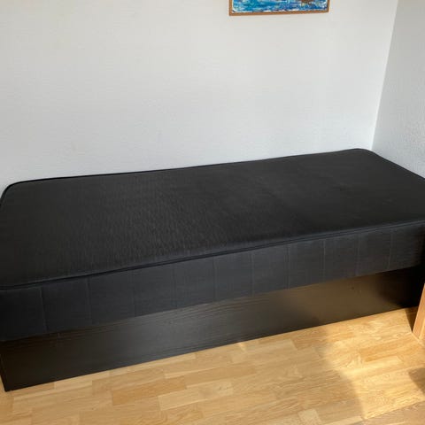 Min tømrer har lavet sengen af 10*4 lægter og træplade. Sengen er ubehandlet.