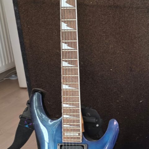 Super velspillende gitar med meget behagelig og hurtig hals. Den har været på vejen så den har nogle skrammer, men der har aldri været nogle funktionelle problemer med elektronik eller ellers.