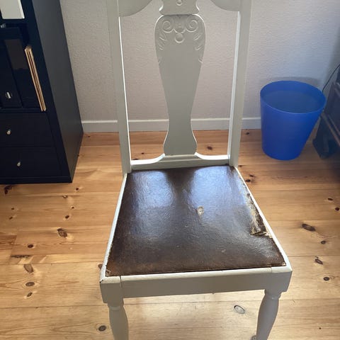 7 malede stole, der desværre alle er løse i ryggen.