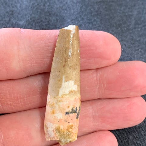 Smuk, naturlig belemnit (forhistorisk blæksprutte-fossil) med fin form og patina. Ca. 24,8 g.