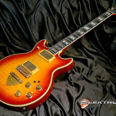 Ibanez S Series elektrisk guitar fra 1996 i blå finish med tremolo og karakteristiske trekant-inlays på gribebrættet. Har sort headstock med Ibanez-logo og serienummer stemplet bagpå halsen, made in Japan.