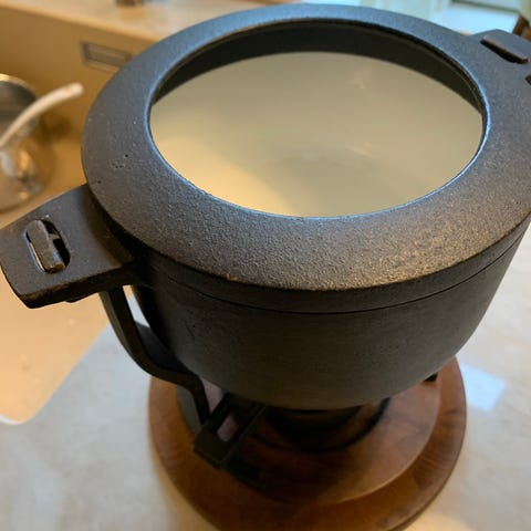 Støbejernsfondue m/teakstel, Lange, Svendbord &Sigsma