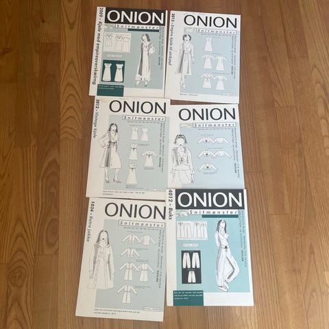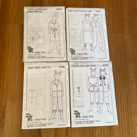 Samling af Onion symønstre til børnetøj i str. 92-128 med bl.a. frakke med hætte, trøje, nederdel, vest, gamacher, sjælevarmer, kjole og bukser. Tegningerne viser forskellige snit og længder, så der er flere varianter at vælge imellem.