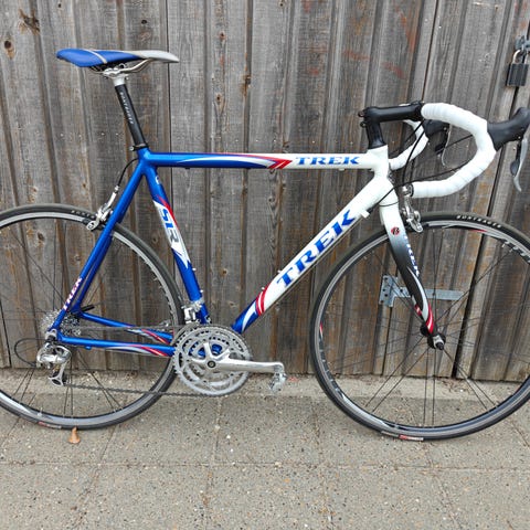 Kan nogen måske gå glæde af denne: Trek racercykel i blå, str XL med 28" hjul til mænd. Udstyret med Shimano 105 gear, Mavic Ksyrium Elite hjul og Look Keo pedaler. Cyklen kører fint, men skiftegrebet til forskifter virker ikke. Man kan jo blive på lille klinge. Men bedst er, hvis man selv kan fikse grebet. Så får man en super cykel.