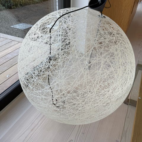 Lampen giver et stemningsfuldt, diffust lys og fungerer perfekt over spisebord, i stue, entré eller rum med loftshøjde. Et ægte designstatement.