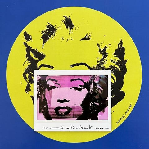 En unik reklameplakat for Schlitz Malt Liquor - 100% American. Baseret på Andy Warhols serie af print af Marilyn Monroe, er dette det fulde udskårne ark med farvekontrol og har aldrig været udstillet. Schlitz Malt Liquor blev brygget i USA og eksporteret til Europa i begyndelsen af 1970'erne. Denne plakat blev erhvervet i Skotland omkring 1971.