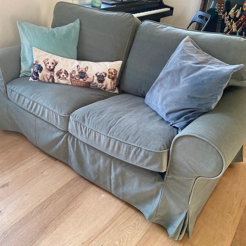 Den ene rygpude er efterhånden lidt slidt, men man bemærker det kun, når man har betrækket af.