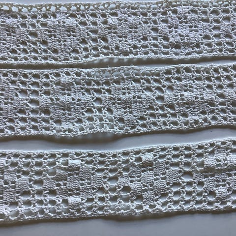 Hæklet blondebånd og trekanter i naturhvid
