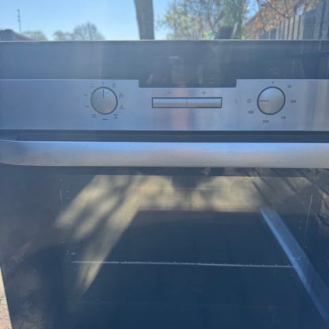 Whirlpool indbygningsmikroovn i stål med drejetallerken og grillrist. Betjenes med to drejeknapper og digitalt display på fronten.