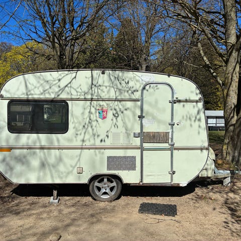 Fin lille retro vogn. Klar til nye eventyr. Synet i 2023. Bunden er tør og fin. Uden tegn på fugt