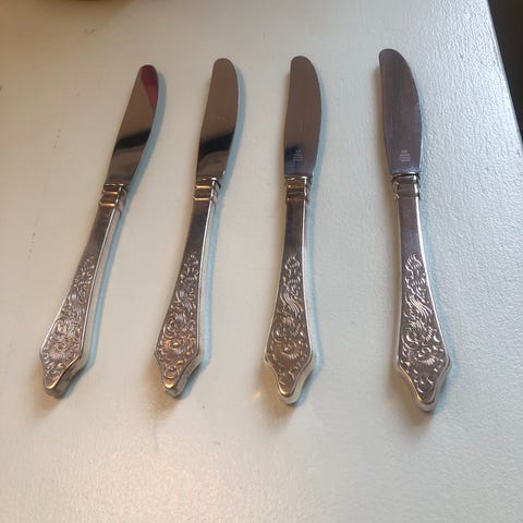 Gaffel og kniv - kniven med revne på skaft - barok fra omkring 1730'erne