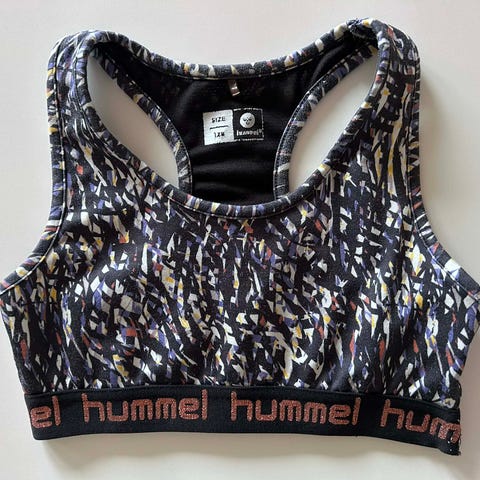 Hummel sportsshorts i str 128, sorte med grønne pile i siderne. Elastik og snøre i taljen, let materiale der er rart til sport og leg.