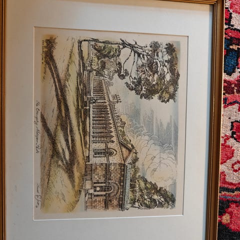 Smukt og detaljeret litografi af Ib Spang Olsen med motiv af togscene/station. Klassisk og stemningsfuldt dansk kunstværk med masser af fine detaljer.