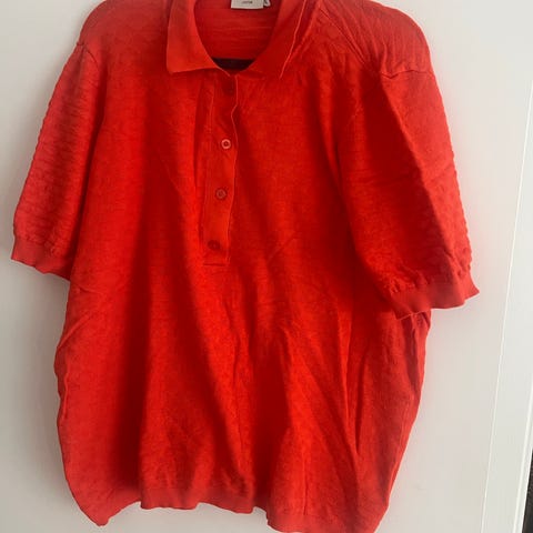 Orange KAFFE KAdotta Amber bluse i str 46 med hvide prikker. Lavet i 100% viskose og med lange ærmer med let rynkeeffekt forneden.