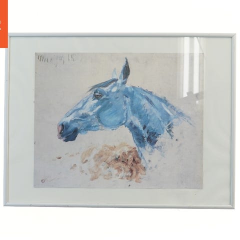 Indrammet hestebillede med guldramme / Matthew Hillier