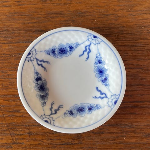 Bing & Grøndahl lille ottekantet skål i hvid med blå dekoration