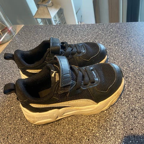 Hummel sneakers i str 28 til dreng med velcrolukning og snørebånd foran. Blå og hvide med lys detalje i sålen og polstret kant om anklen. Kan blinke når man hopper