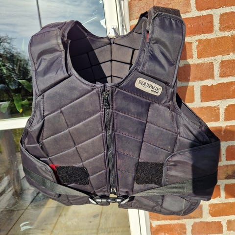 Spring ridevest i god kvalitet. Størrelse: "barn medium". Mærke: Equipage.