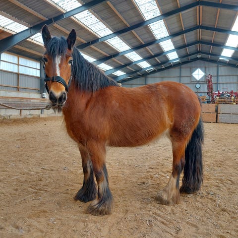 Jake er trafiksikker og tager både traktorer, lastbiler, motorcykler og cyklister helt roligt. Han er vant til at blive læsset af sin 8-årige rytter og køres flere gange ugentligt uden problemer.