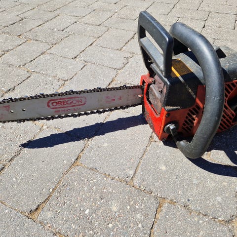 16” sværd. Starter godt. Med transport-/opbevaringskasse.