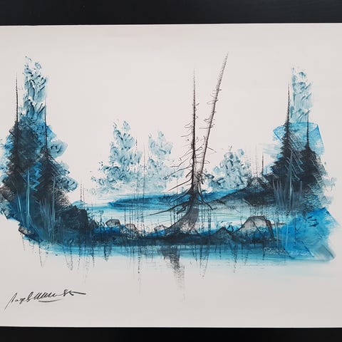 Tryk med landskabsmotiv. Udført af kunstneren Hermann Paulsen. Flensborg