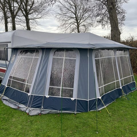 Isabella Penta Flint fortelt i farven steel-grey/stålgrå. Modelbetegnelse A1025/G19 med art.nr. 109310259. Forteltet er beregnet til campingvogn med A-mål 1025 og G19 stel. Stoffet har gråt mønster og er udført i teltdug egnet til campingbrug. Velegnet som fortelt til længere ophold på campingplads eller sæsonbrug, hvor der ønskes ekstra opholdsrum foran campingvognen.