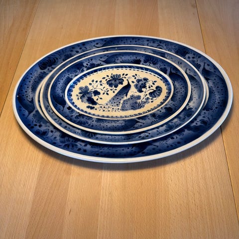 Københavns Fajancefabrik/Aluminia oval skål påfuglestel.