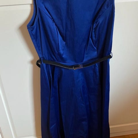 UK str 16. Mål: bryst 101,5 cm, talje 86,5 cm, kjole længde 112 cm.