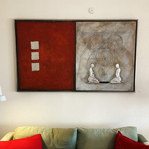 Rødt maleri med lidt struktur i malingen. Malet med akrylmaling