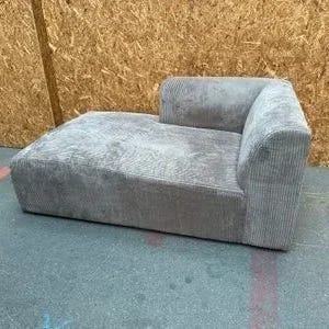 Chaiselong/Sofa i blågrå bredriflet fløjl,fra Living&more,model Karl.