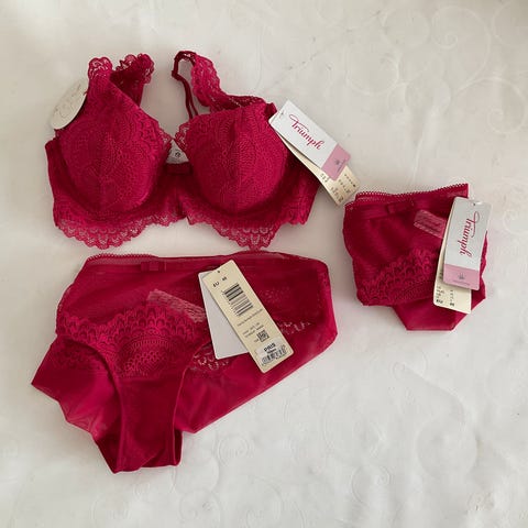 BH/trusser, BH og trusser, Triumph, str. 75B og 40, Sort, Polyamid og elastan, Ubrugt, 6 sæt bøjlebh'er og trusser samt 4 par ekstra trusser. Sort blonde. Aldrig brugt og stadig med mærker. Nypris 2464,-. Giv et realistisk bud.