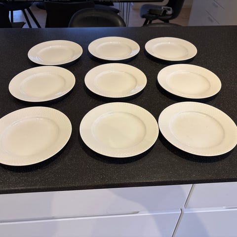 Dybe tallerkener ø 18 cm, frokosttallerkener ø 20 cm, middagstallerkener ø 26 cm