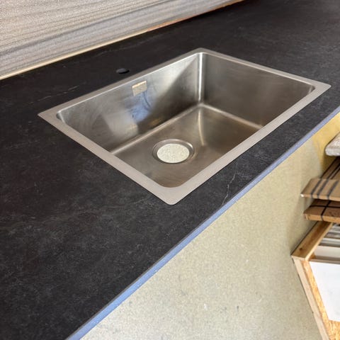 Ny Komposit Sort køkkenbordplade med integreret stålvask