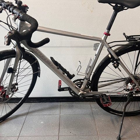 Cyklen er i god stand og har stået opbevaret under overdækket tag hver dag og så har jeg haft den inde i min lejlighed om natten og når jeg ikke har været hjemme. Den bærer derfor ikke meget præg af vind og vejr, men kunne godt klare en klud eller en let rengøring.
