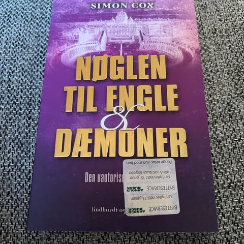 To bøger af Simon Cox: Nøglen til Da Vinci mysteriet og Nøglen til Engle og Dæmoner. Paperback-udgaver med dansk tekst og omslag i orange og lilla.