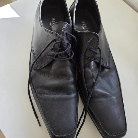 Sorte By Friis herre festsko i læder, str 41, med snørelukning. Har firkantet snude og lav hæl.