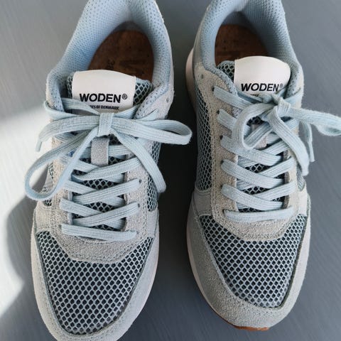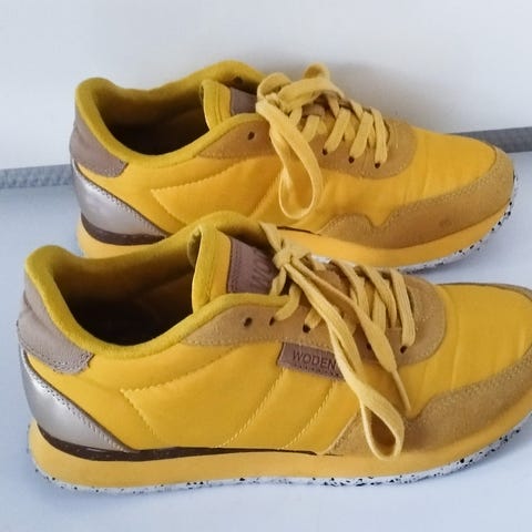 Rosa Woden sneakers i str 38 med hvide såler og snørelukning. Har ruskindsdetaljer og sort hælkappe. Stort set ikke brugt. De hvide såler er ikke snavsede - materialet har naturligt grå gnister i.