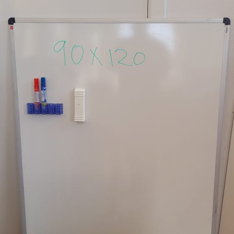 Whiteboard i størrelsen 90x120 cm med aluminiumsramme. Der følger magnetisk holder til tuscher og visker, som kan sættes på tavlen.