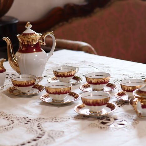 kaffestel i porcelæn med guldkant